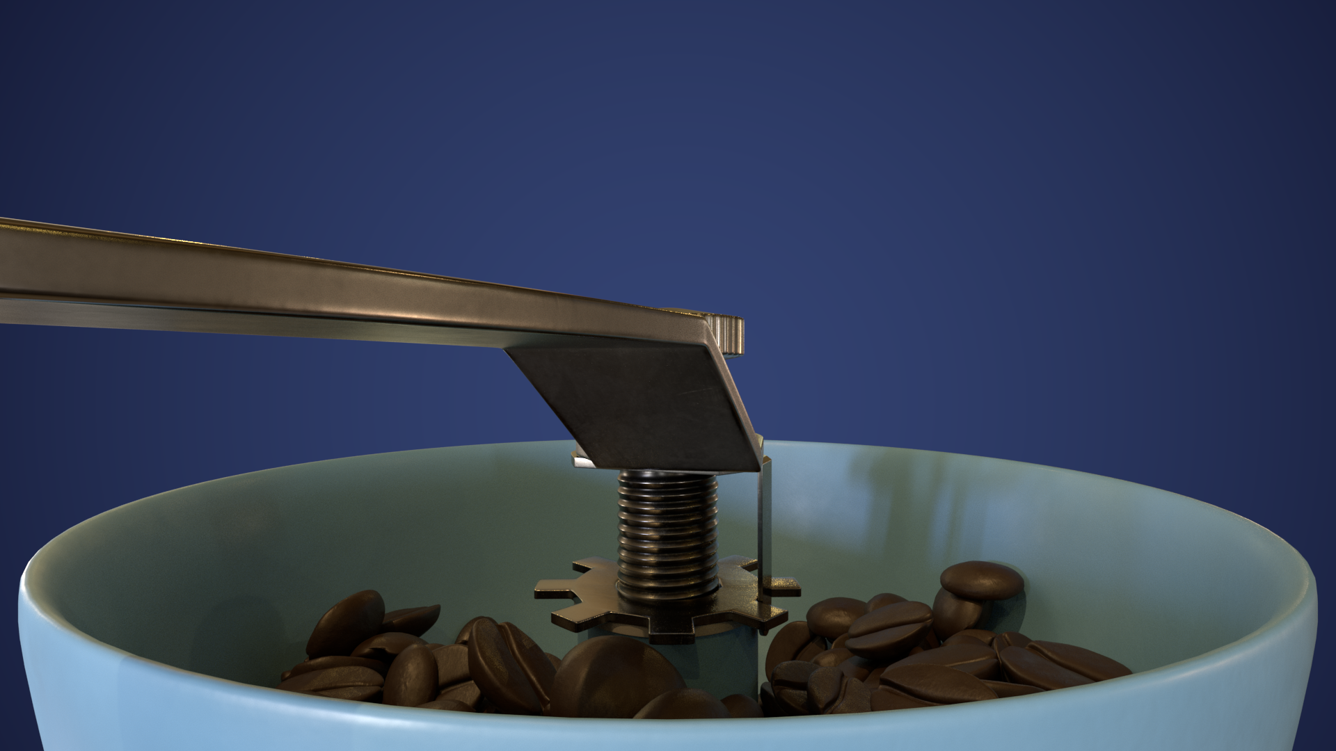 As part of the Visual Effects postgraduate programme at George Brown College, we were required to undertake a thesis project that allowed us to look in-depth into a specific area of visual effects and "design and deliver a short video that exemplifies a professional level of skill". I am fascinated by the power and potential of proceduralism so I knew early on that I wanted to work on something in Houdini, and despite several other ideas coming to mind in the months before the project started, I kept returning to my original question: could I produce a realistic-looking simulation of a coffee grinder in action? This was inspired by a 3D model of a grinder I had worked on in Maya in advance of joining the GBC programme, which I had modelled as closely as I could to its real counterpart and which I had thought would be interesting to animate.